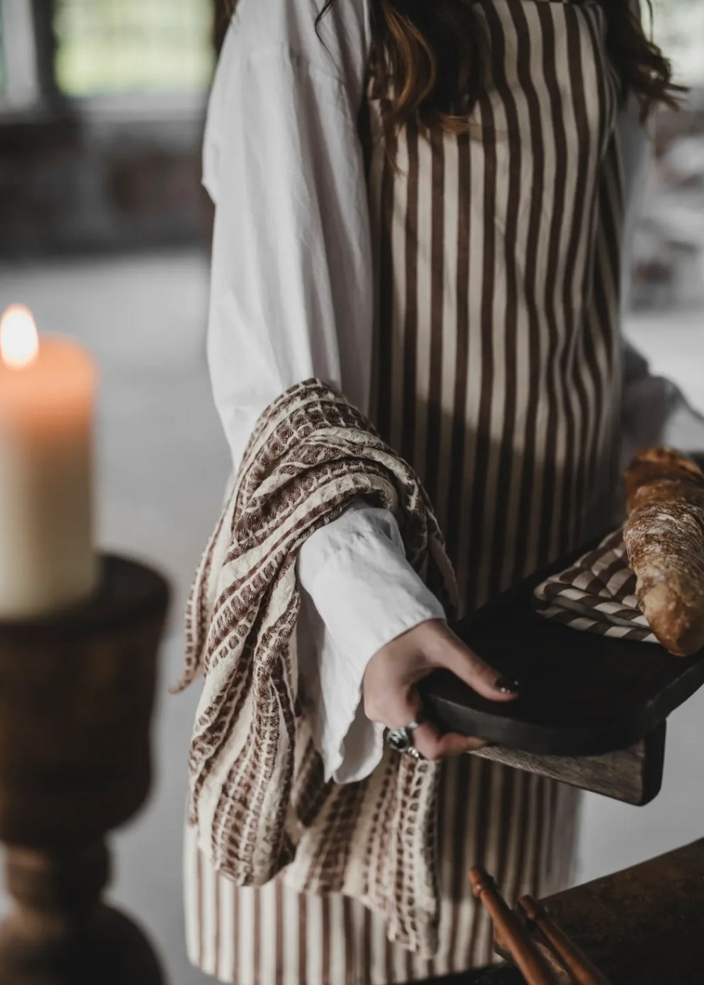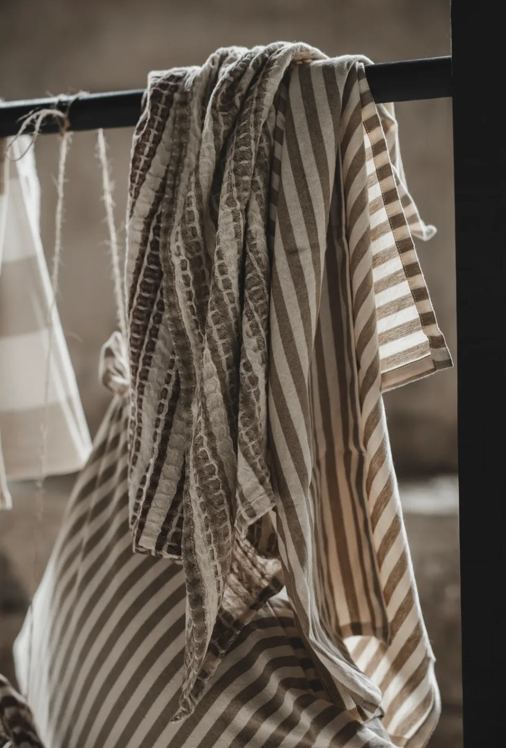 Fine viskestykker, som kommer i en praktisk 2-pak, har smalle beige striber, og vil bringe en friskhed og stylish følelse ind i køkkenet. Viskestykkerne har et klassisk stribet mønster, som giver et bistro udtryk, og er både praktiske og charmerende.